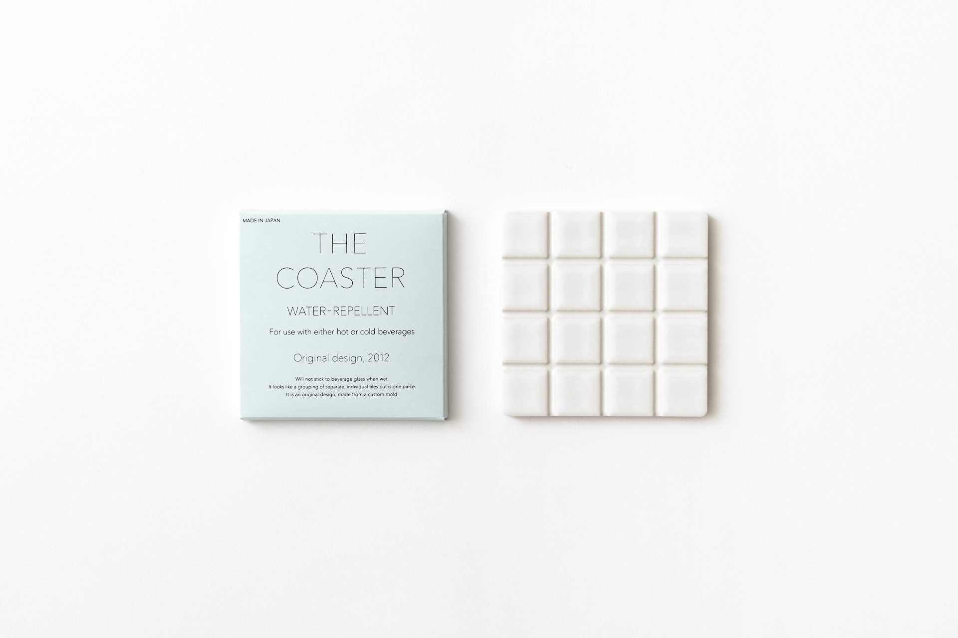 杯墊的設計師水野學明白到凍飲杯的冷凝水(俗稱倒汗水)很容易粘起一般紙製或布製的杯墊,因此利用磁磚素材來設計這款杯墊,不會因為水的張力粘著杯底之餘,杯墊亦不會因為水濕而破壞了它的外觀,而且容易清潔打理。